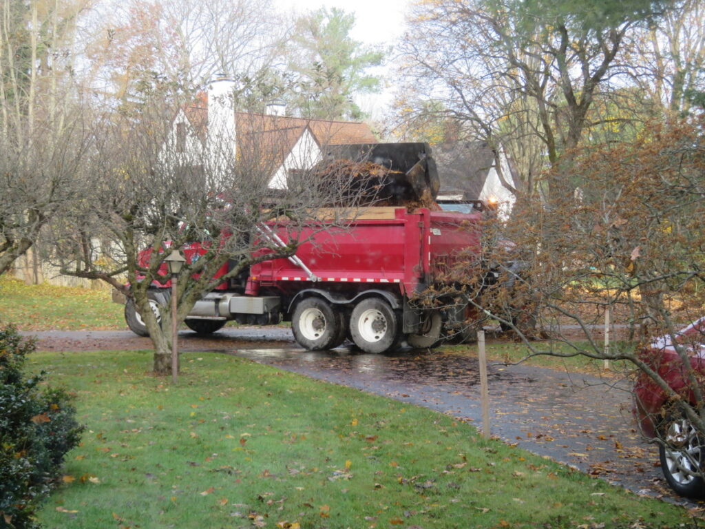 The town finally came to pick up our leaves! Grandma had been adding to the piles, so there were lots to pick up! I made sure my pride got to watch the town crew! First, the scraper moved all the leaves into the middle of the street. Then the crew with backpack leaf blowers cleared what the scraper missed. After that, the dump truck moved into place and the loader got to work on the pile in the middle of the street! Our leaves filled up one dump truck and another one was waiting!