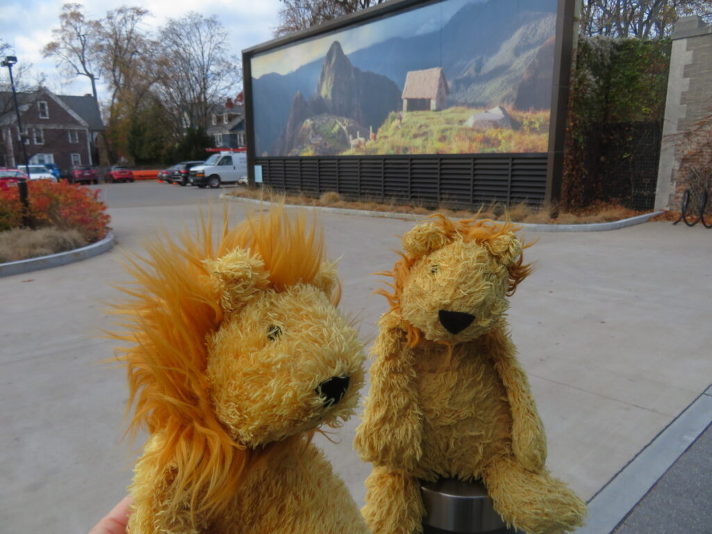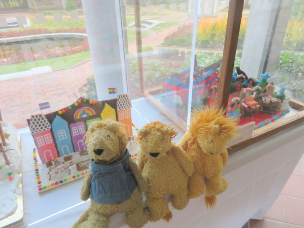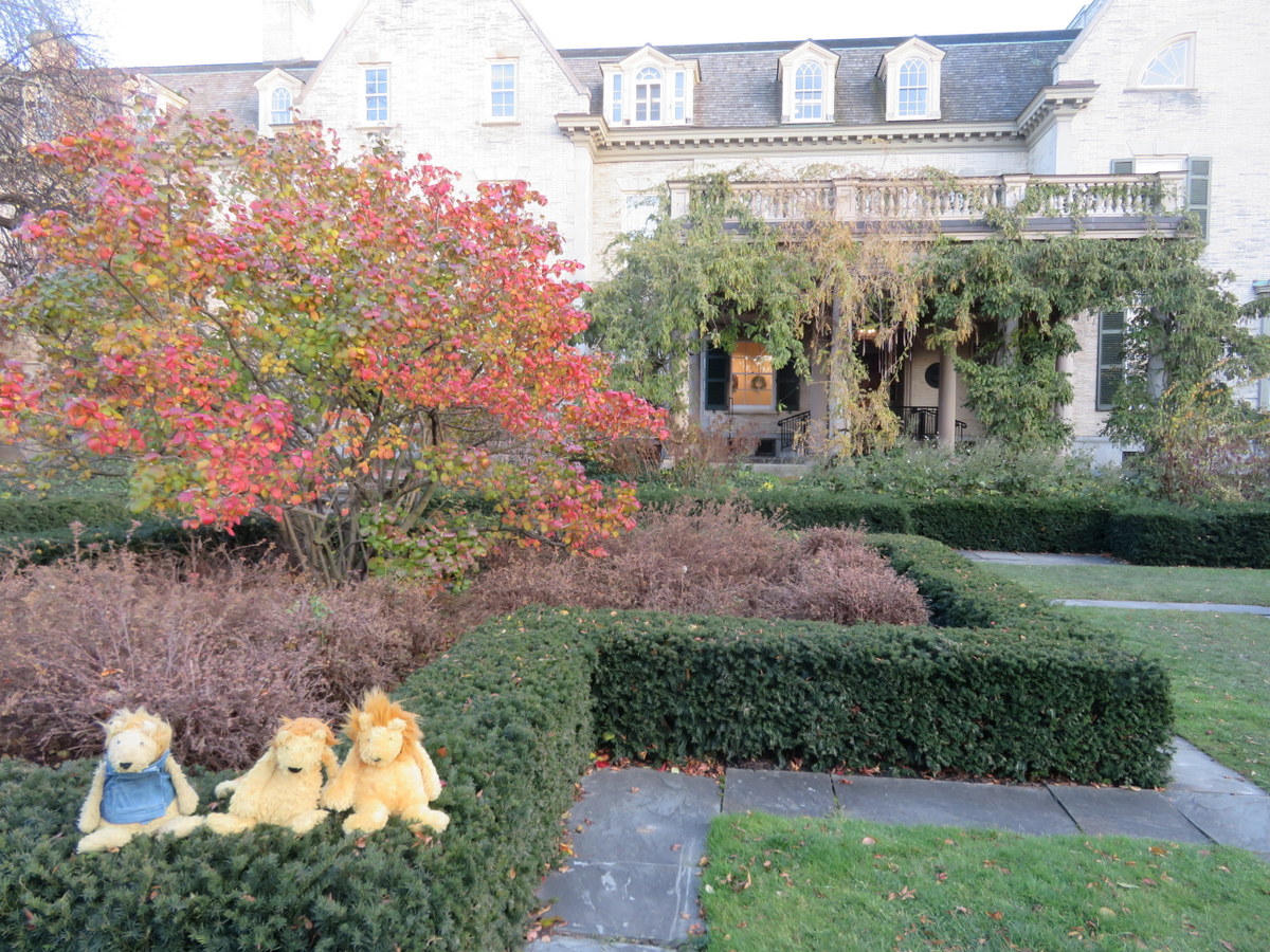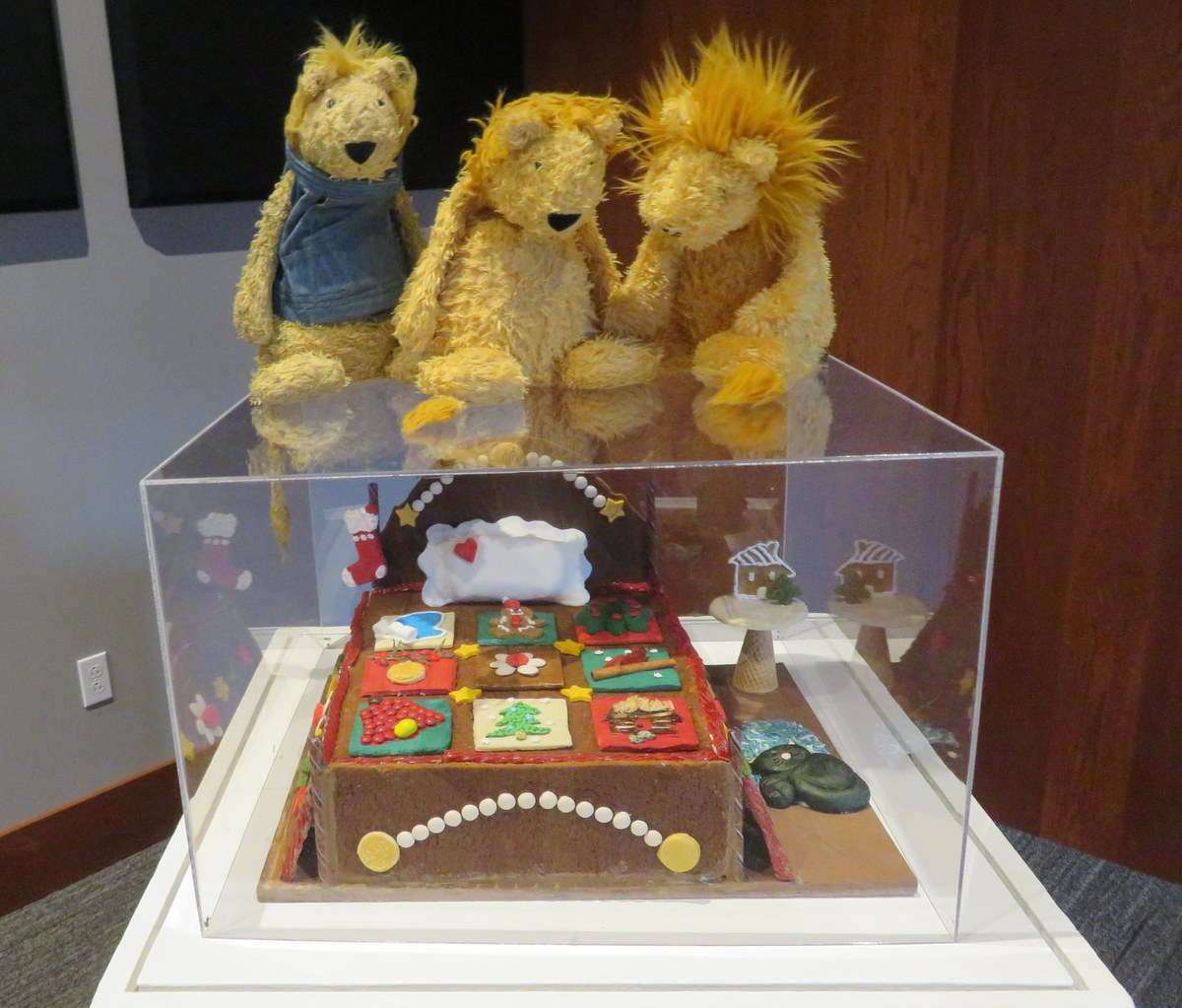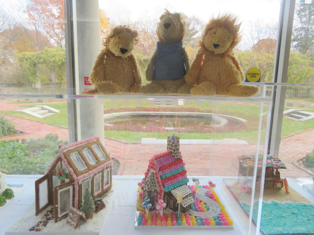 Last Wednesday, Grandma took me and my pride on a big adventure! We went to the George Eastman House and Museum to see the holiday displays. I was happy it was mild, dry weather so my pride could see the Colorama display in the parking lot. When we got to the admission desk, the clerk said that lions could get in free! We came to see the gingerbread house display. It started right inside the new entrance and continued in the corridor connecting the museum and Eastman’s mansion. The windows there give views of the east garden, too!
