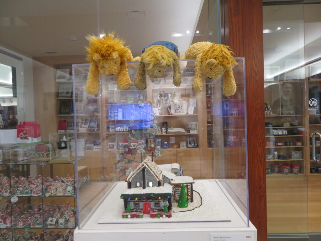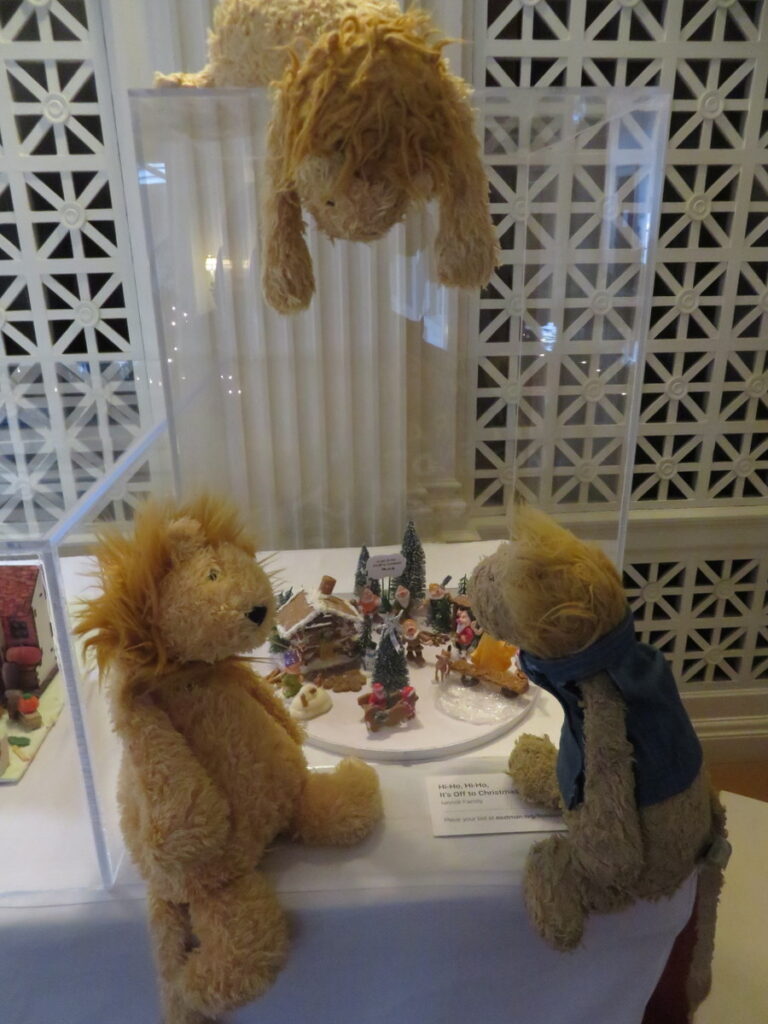 It is always fun to see creations made from gingerbread whether they are houses or represent historical buildings or great big scenes. Good thing those gingerbread creations were in protective plexiglass cases or you and your pride would have made dinner of them!
