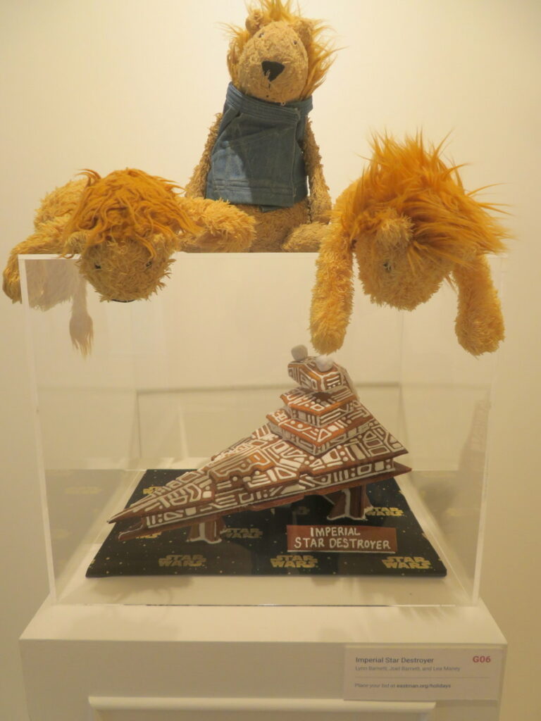 There are galleries along the hallway with more gingerbread houses and some wreaths. We all liked the Star Wars spaceship. My pride had never been to the Eastman House before, so they didn’t understand the wreath with an elephant head until we got all the way to the great room in the mansion.