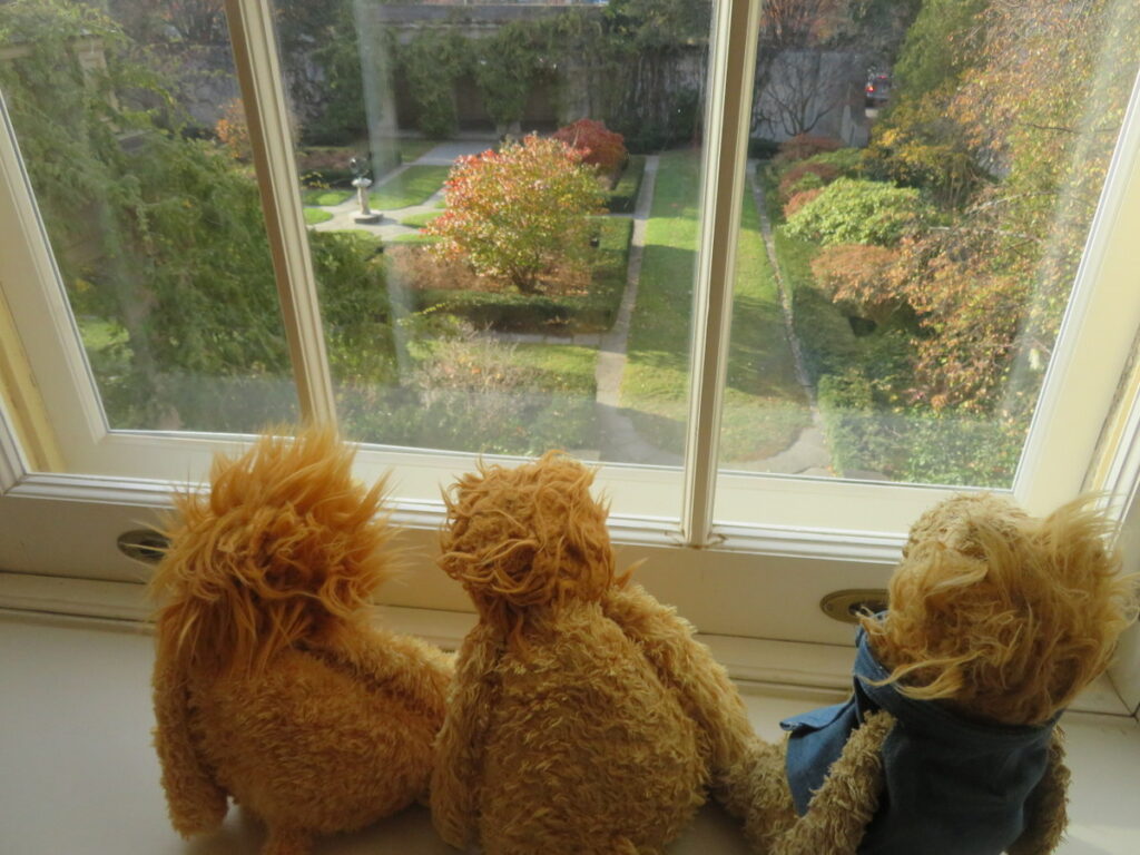 After that, we went upstairs! I wanted my pride to get a better look at the elephant head in the great room. There were more gingerbread houses, too! In the discovery room, I showed them the early machines that made still images look like they were moving. The sun was pretty on the east gardens! We looked at the upstairs organ console and came back downstairs via the banister!