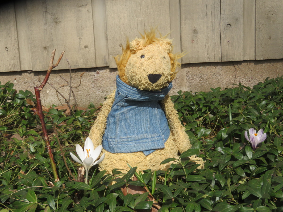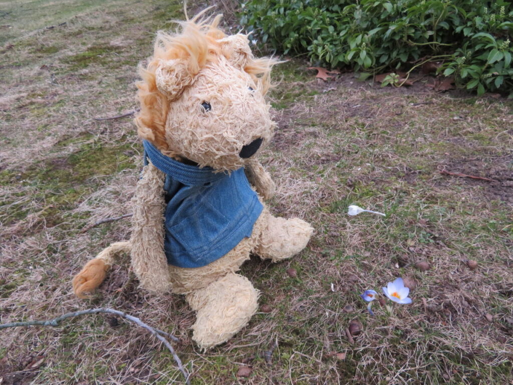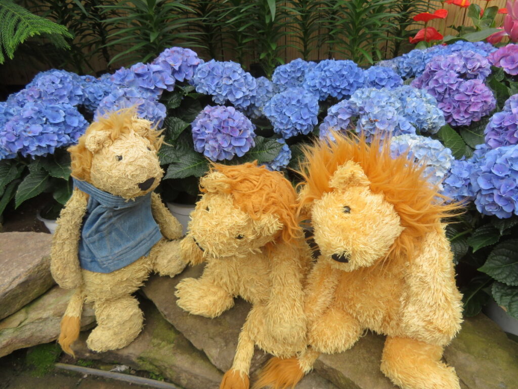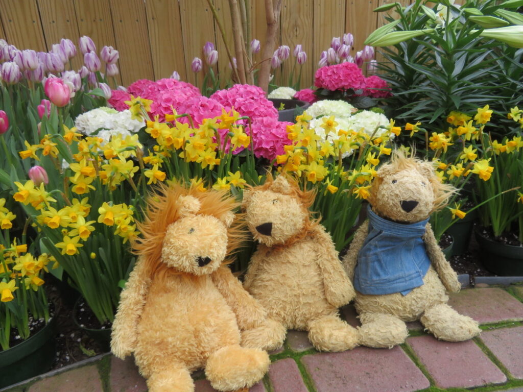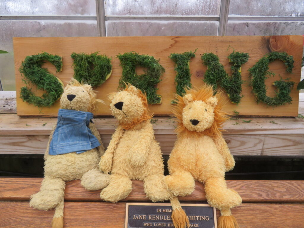 When the spring flower display went in at Lamberton Conservatory, Grandma asked me if I wanted to take my pride to see it. I said “Yes”! It was fun to show them all the pots of daffodils and other spring flowers in bloom! Guess what? We met another grandma who had a lion with her! We made friends with Roarie right away!