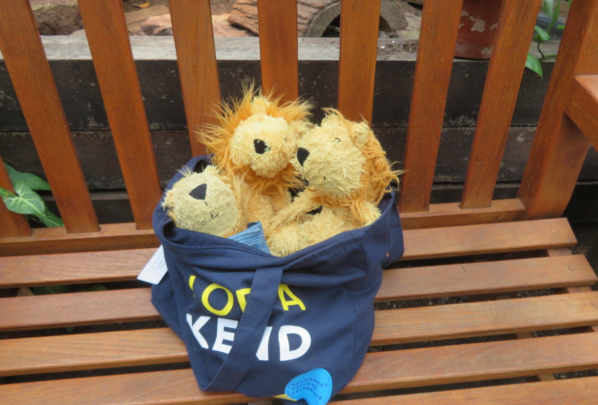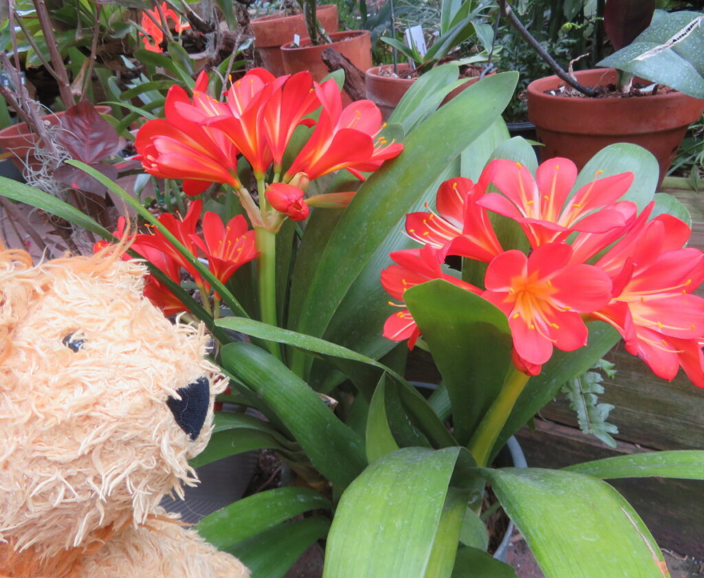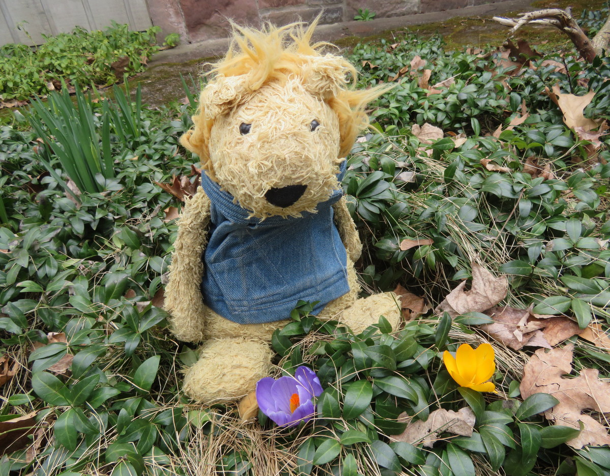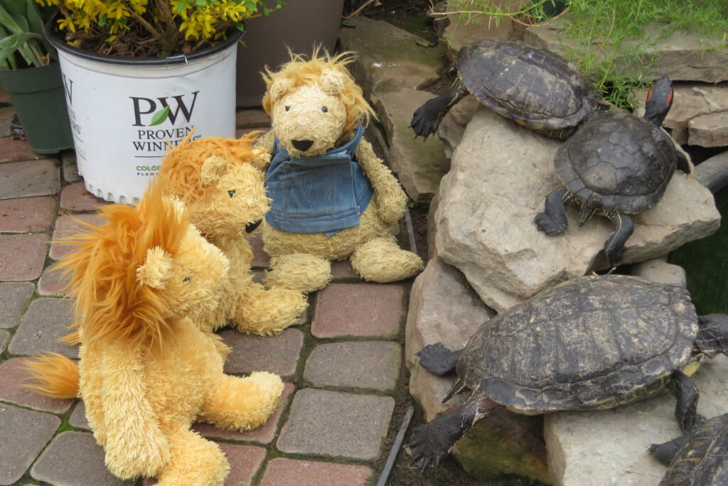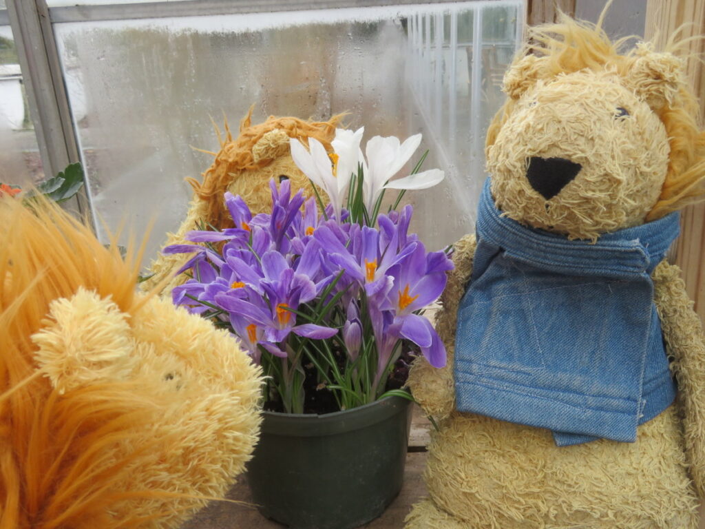 When the spring flower display went in at Lamberton Conservatory, Grandma asked me if I wanted to take my pride to see it. I said “Yes”! It was fun to show them all the pots of daffodils and other spring flowers in bloom! Guess what? We met another grandma who had a lion with her! We made friends with Roarie right away!