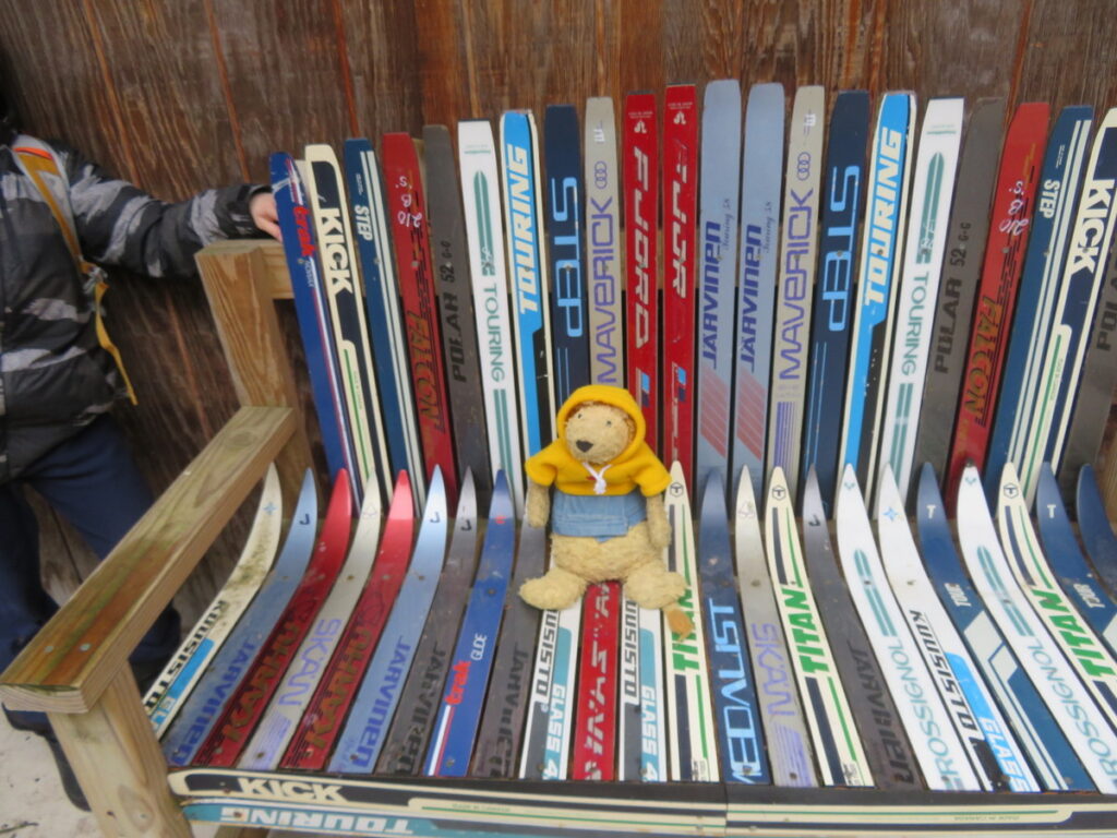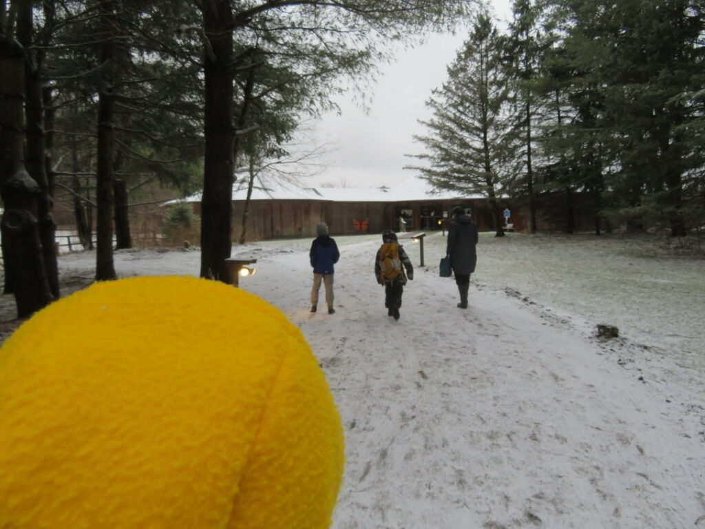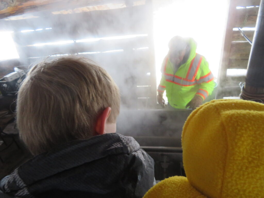 Thomas and Cam got syrup samples at the sugar shack. That’s where the sap is heated so the water steams off. They chose a different path to return to the Nature Center building. I liked the boardwalk and the bench made out of cross country skis! I was sorry James missed coming with us, but his team did well enough at Regionals that they’re going to Worlds in May!