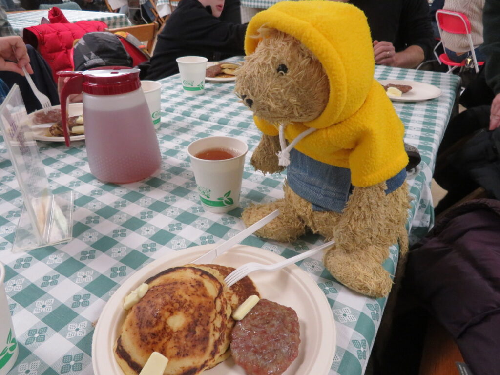 The next Saturday, Grandma and I went to the pancake breakfast at the Cumming Nature Center. Uncle Steven and James were at a regional Odyssey of the Mind competition, so they couldn’t come. Thomas invited his friend Cam and Cam’s parents to come with us, instead! We got there right at the opening time, but there was already a long line of people ahead of us. We had to wait for another family to finish eating before we could sit down! I said hello to some old friends while we were waiting.
