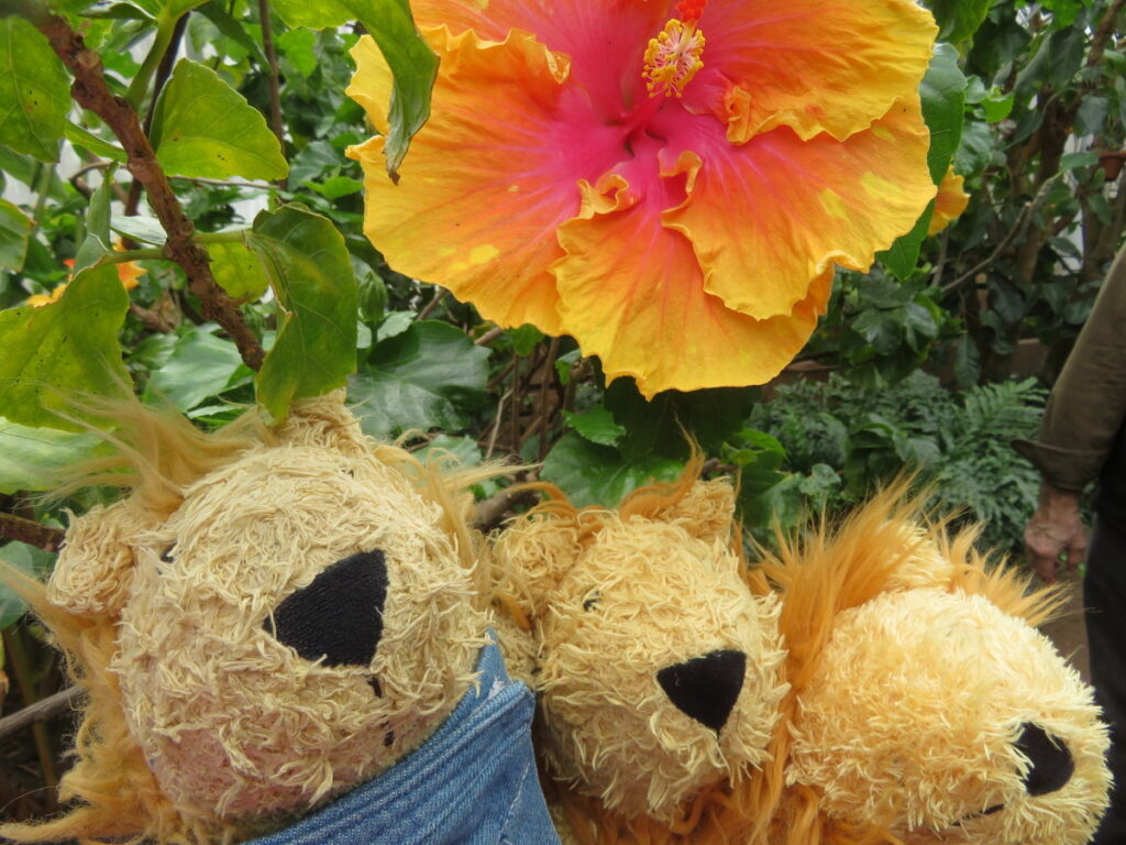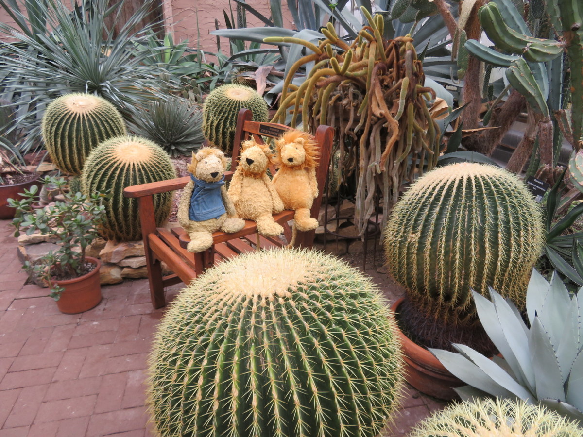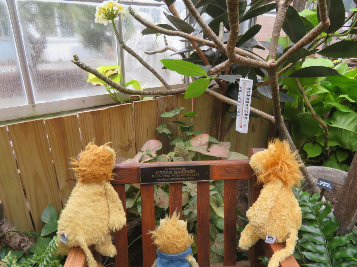I showed my pride the barrel cactus in the desert room and Shellville in the final room. When we saw the blooming plumeria, I told them about all the trees like that I saw in Hawaii. Before we left, we posed for a pride photo in our outing bag.