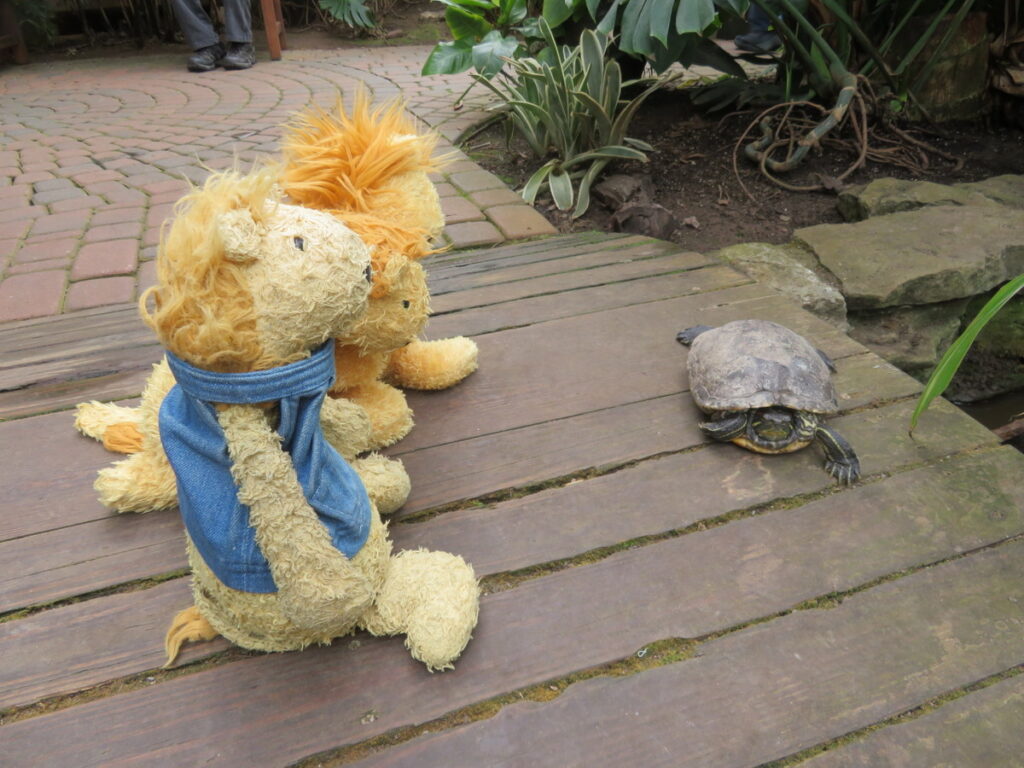 We said hello to the turtles in the seasonal display room, but the button quail wasn’t interested in us. When we moved on into the tropical room, we saw roaming turtles and tortoises. Minivan was too interested in meeting us!