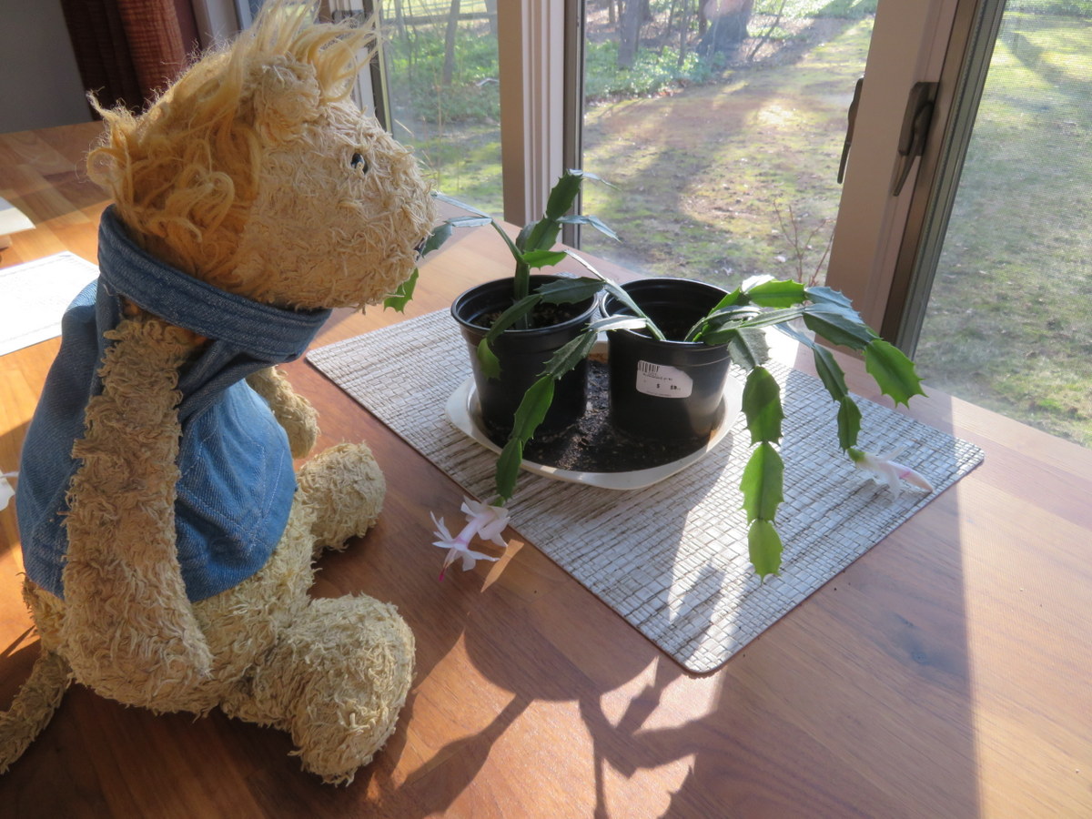 We’re still having some cold weather, but there are more springlike days in between. More of my flower friends are blooming. Last week there were more crocus out. This week, the first daffodils finally bloomed! And inside, my cactus friend that’s supposed to bloom at Christmas has its first two blossoms open. I guess it’s an Easter cactus, instead!