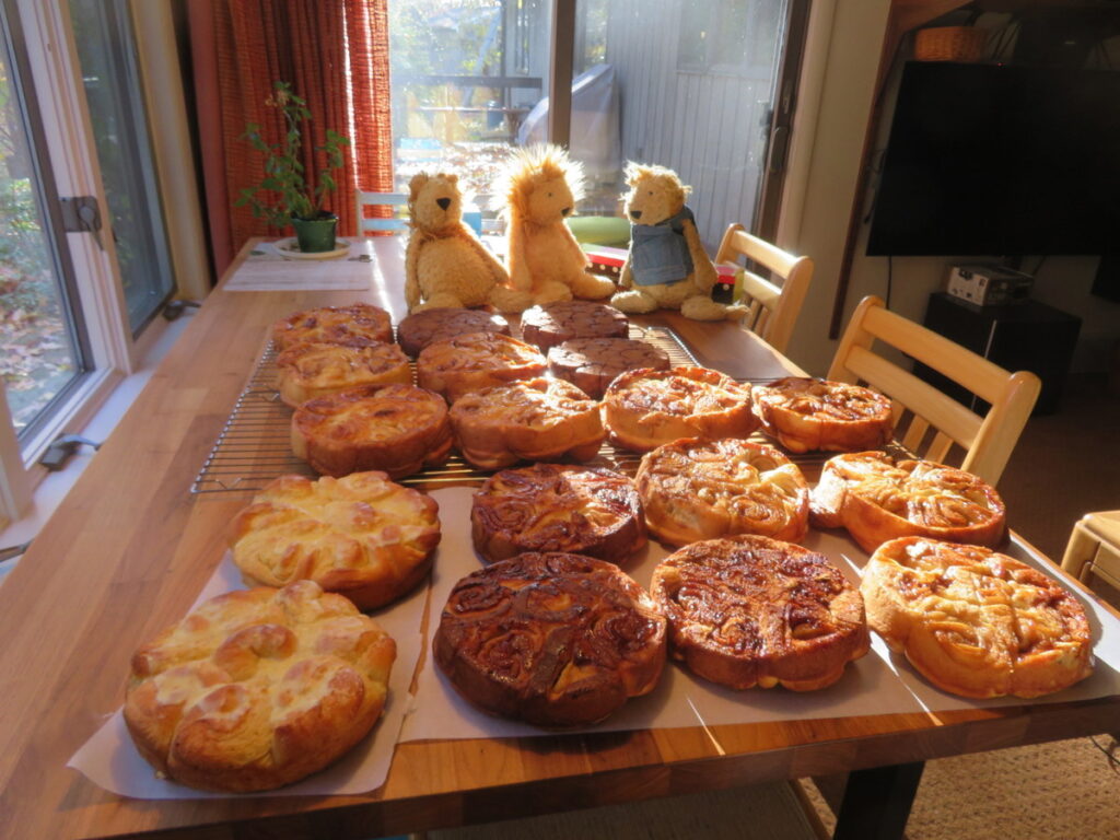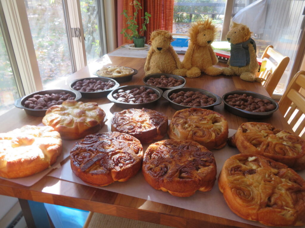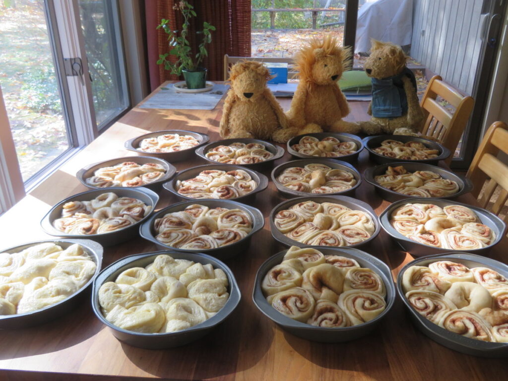 Ever since the church stopped doing the Election Day bake sale, Grandma has been baking some cinnamon rolls and chocolate bread on election day at home. She calls it “nostalgia baking”. Last month our church had a big fund raising event for missions in Haiti and Honduras. There was a silent auction, and Grandma donated four pans of cinnamon rolls to come from her nostalgia baking. The winning bids totaled $135! Grandma made two batches of dough, to make sure she had perfect rolls for the bidders. My pride kept watch on the rising pans of rolls and the finished products, once they were baked. The cinnamon smell in the house was yummy! Grandma took the rest of the baked goods to choir rehearsal on Wednesday night. They all found good homes!