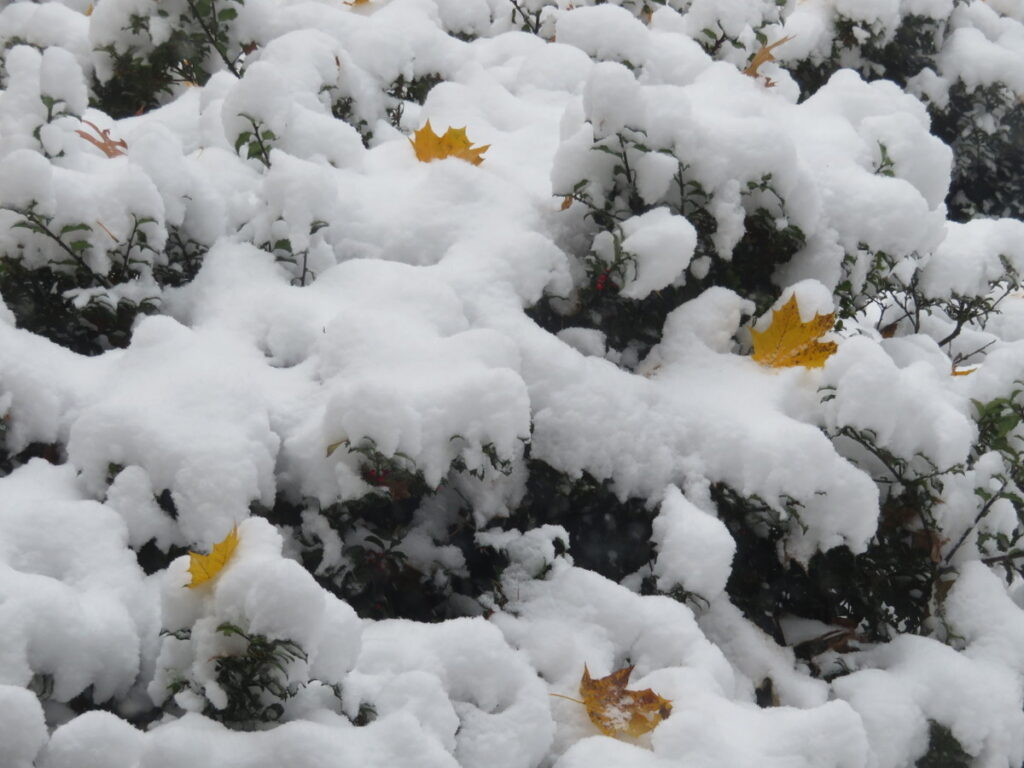 Sunday was rainy again, and yesterday I woke up to snow! We’ve been waiting for the town to collect our leaf pile, and now it’s under snow! The town put up the “Leaf Patrol is Coming” sign on our street, but the town crew has other work to do when it’s snowing.